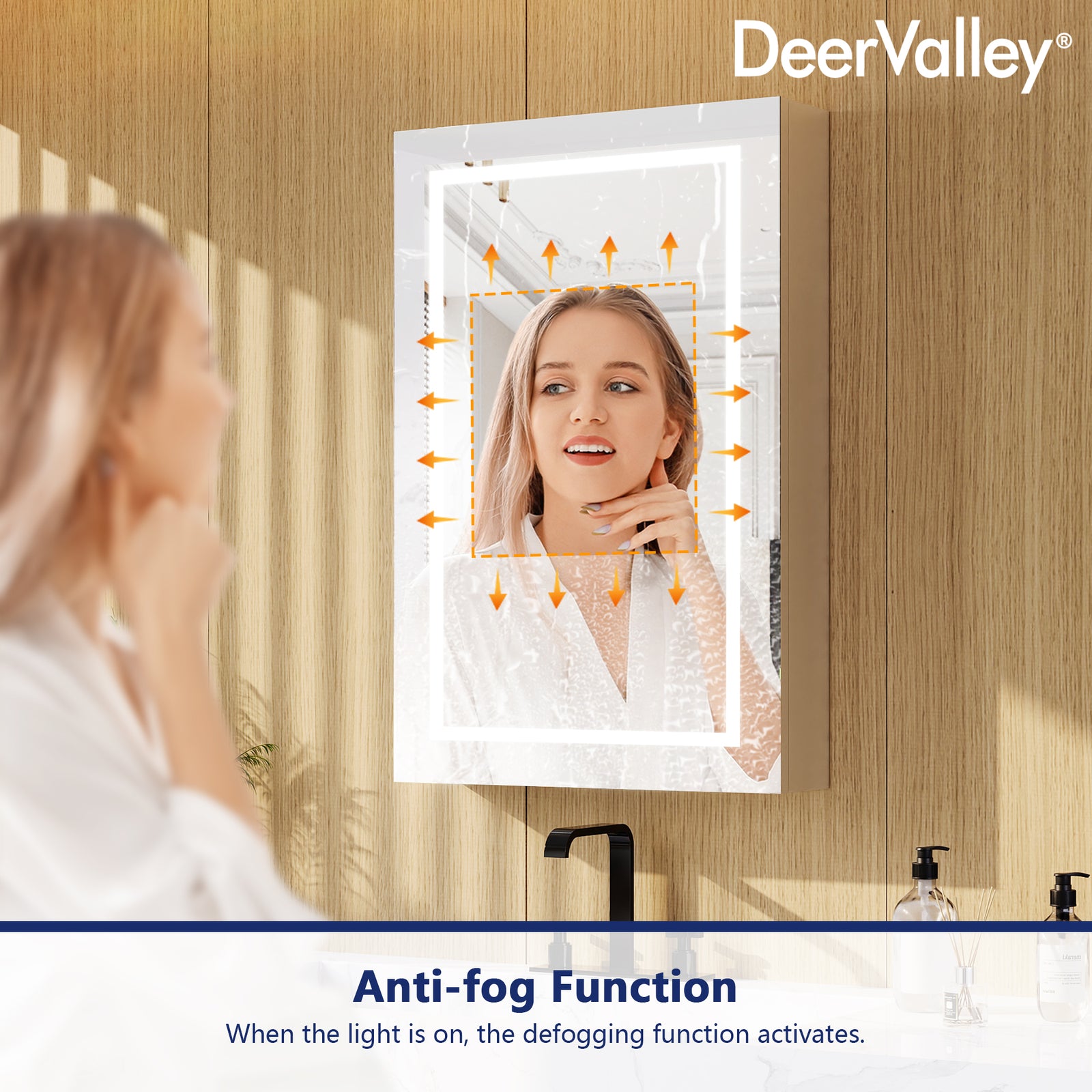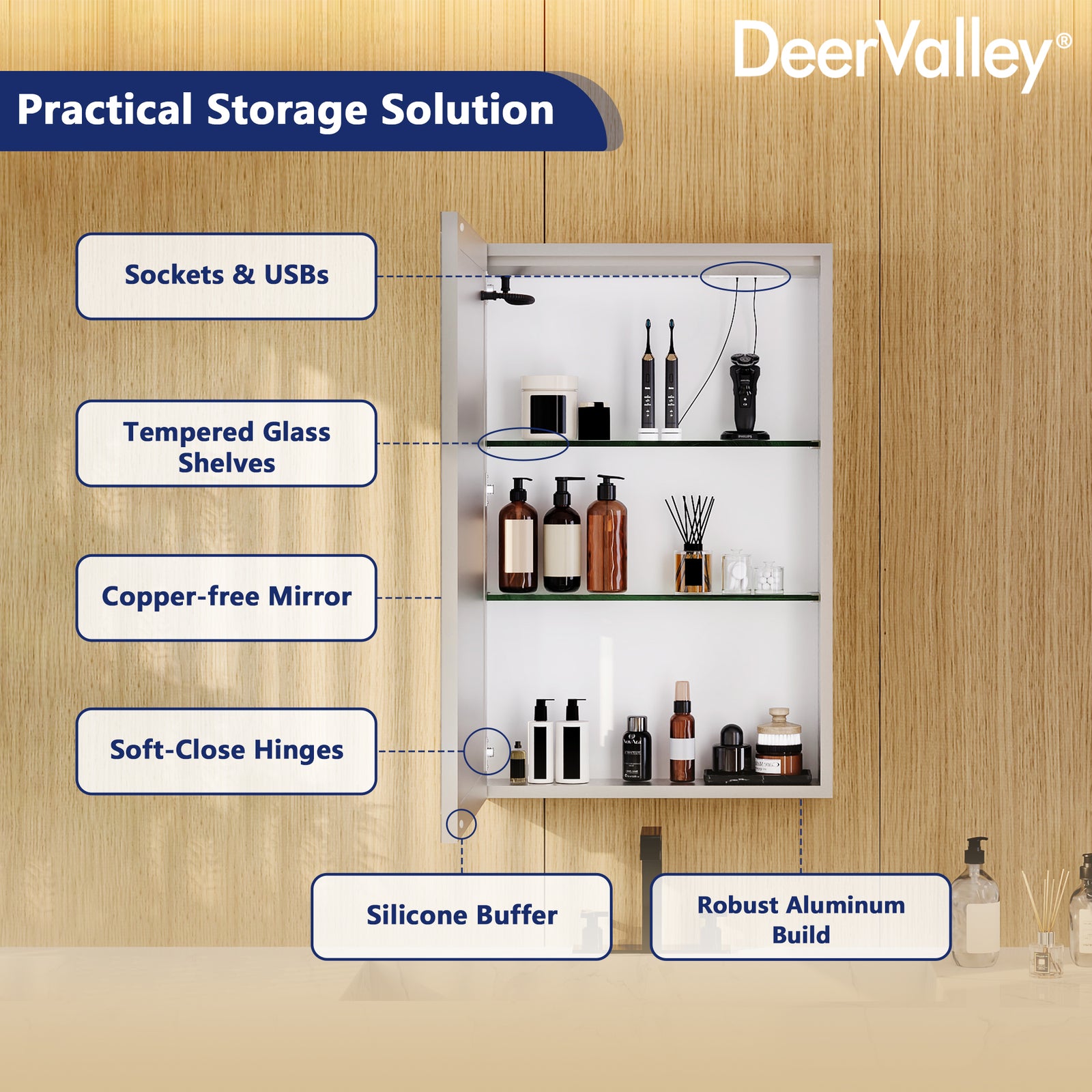 Refine your grooming experience with our DeerVelley LED Mirror Cabinet. Seamlessly transition between 3 light modes and adjust brightness effortlessly. Revel in HD clarity, advanced anti-fog capabilities, and abundant storage on 3-tier tempered glass shelves. Optimize space with its sleek, minimalist design in crisp white.