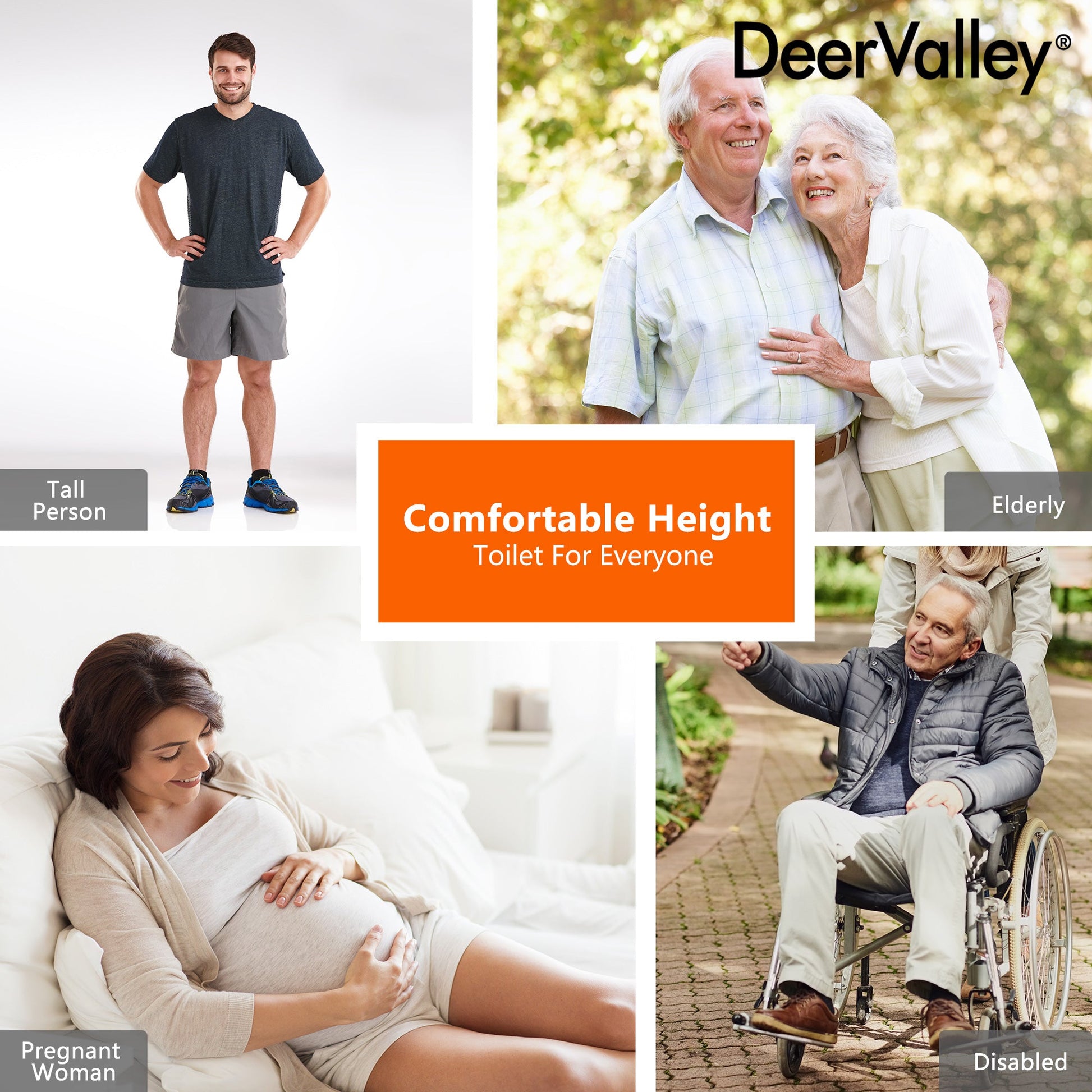 19-Inch ADA-Compliant Height: DeerValley’s 19 5/16 inch ADA toilet meets official standards for accessibility, offering optimal comfort and support; ideal for seniors, pregnant women, individuals with mobility challenges, or taller users, this extra-high design makes sitting and standing easier while enhancing the overall ergonomic bathroom experience.