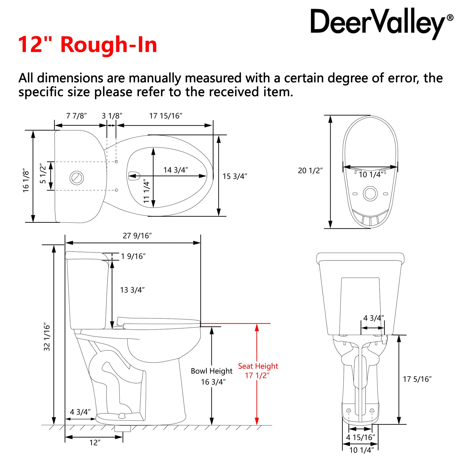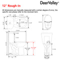 The DeerValley Two-Piece Dual-Flush Elongated Toilet combines powerful performance with water-saving efficiency. Featuring a 17-inch ADA-compliant chair height, it provides easy comfort and accessibility for users of all ages. Its advanced dual-nozzle swirl flush system delivers a clean, quiet, and thorough flush with every use, maintaining an impressive MaP 1000g rating. The eco-friendly 0.8/1.28 GPF dual-flush design helps you conserve water without sacrificing power. Crafted from premium vitreous china with a smooth, glossy finish, this toilet resists stains and scratches for lasting durability. The thickened soft-close seat ensures a stable, noise-free experience, while the two-piece structure simplifies installation and maintenance.